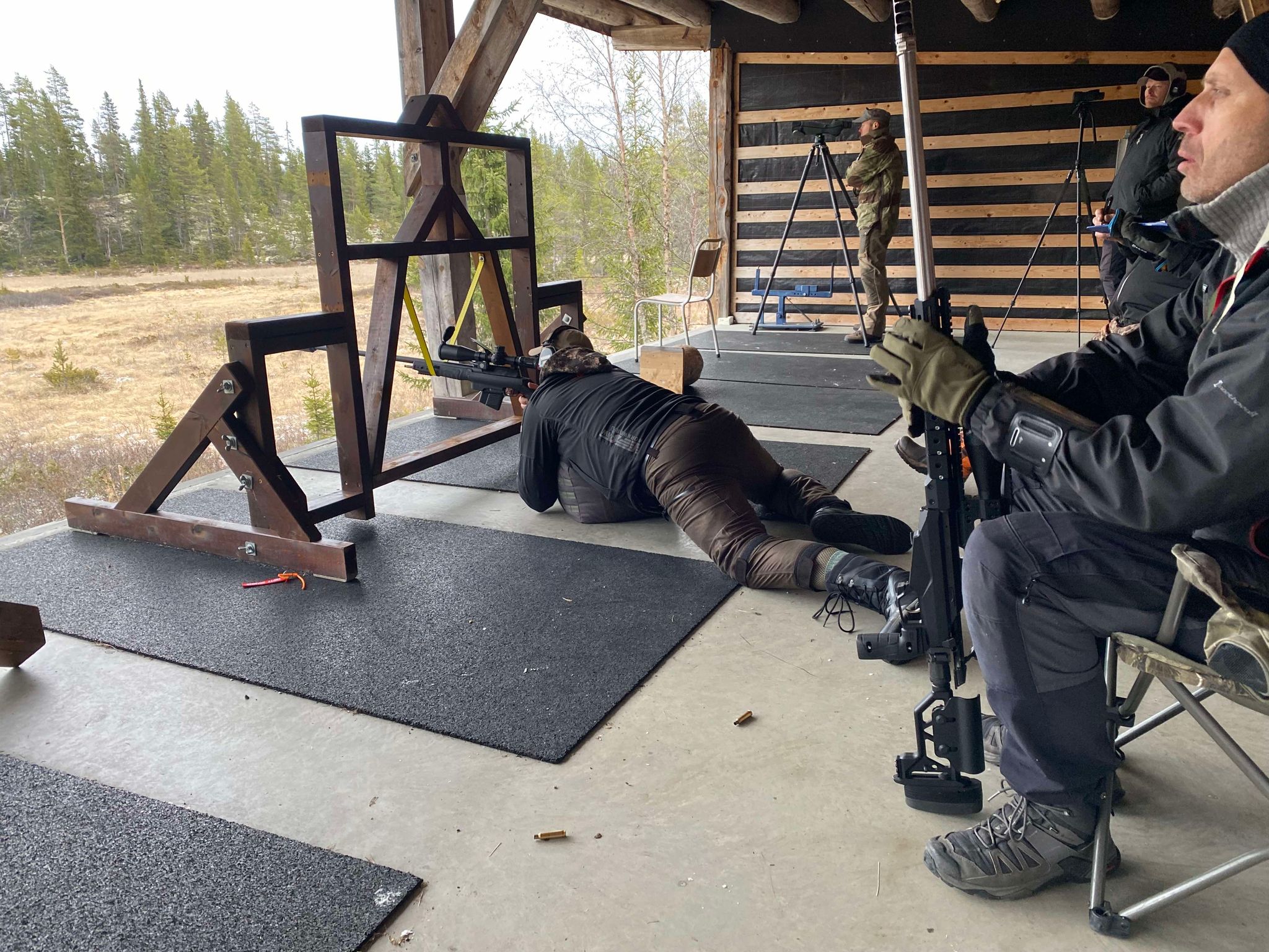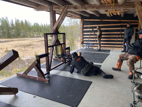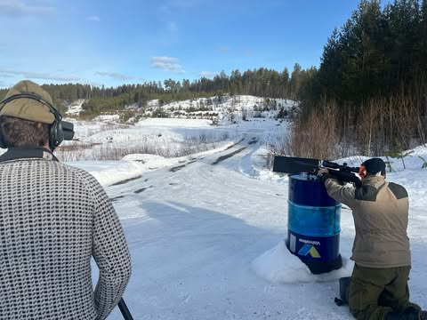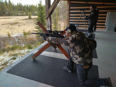 feltskyting med øvelser og innslag av elementer fra langholdskyting,